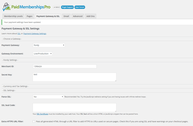 Your Paid Memberships Pro plugin is now connected to the Fondy payment gateway, allowing you to accept and manage subscriptions efficiently.